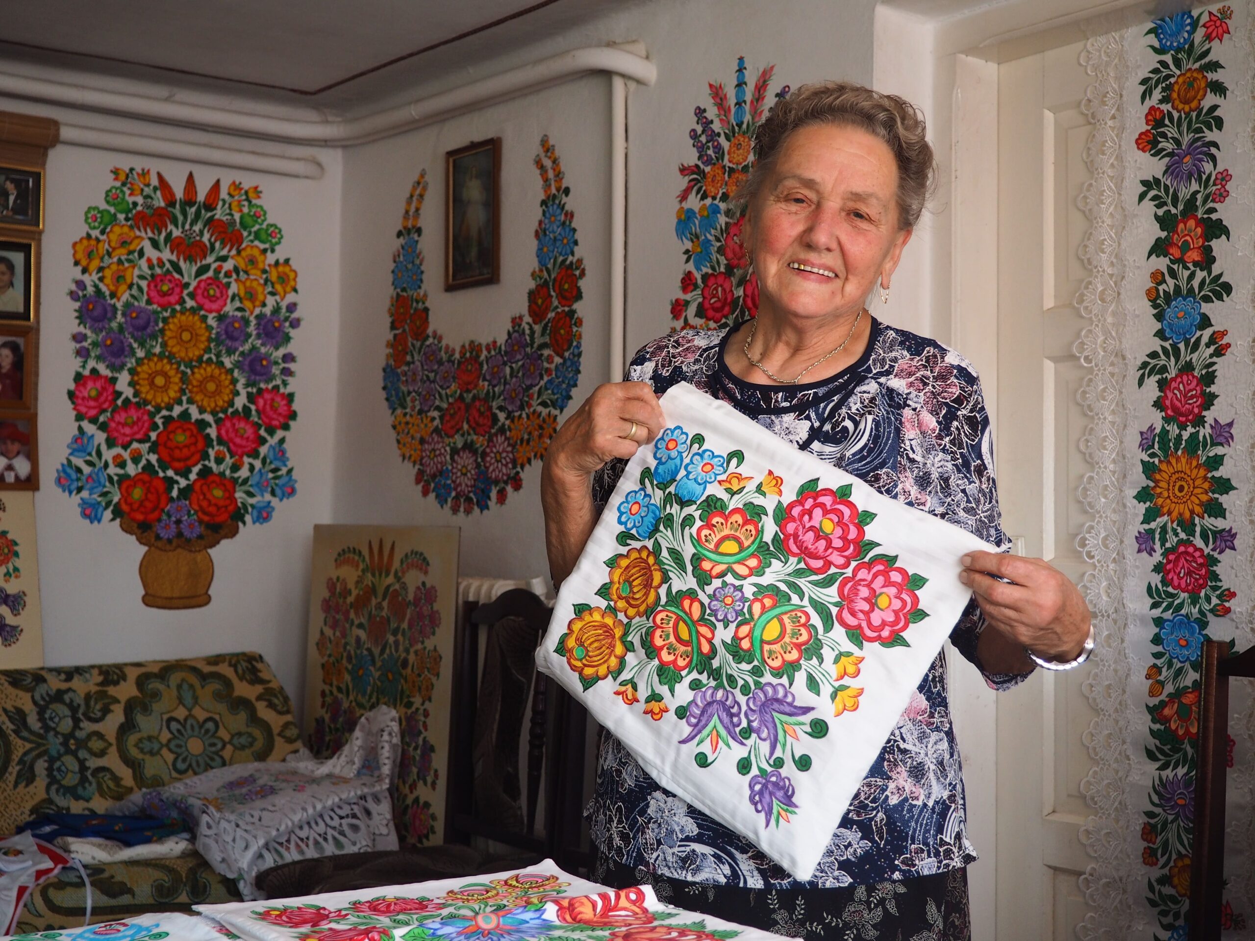 Bernadetta Słota (ur. 1940 r.) od dziesięcioleci kontynuuje jedną z najbardziej rozpoznawalnych tradycji ludowych w Polsce – zdobienie domów, studni czy przedmiotów codziennego użytku kolorowymi motywami kwiatowymi. Jak sama przyznaje, malowanie kwiatów daje jej ogromną radość i pozwala odpocząć. „Maluję od dziecka, zawsze miałam wymalowane mieszkanie” – mówi artystka.