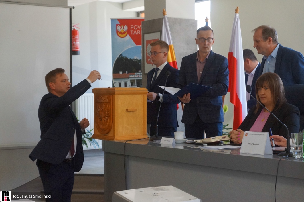 Wszystko szło więc jak po maśle, ale podczas sesji w środę 15 maja nie udało się skompletować zarządu powiatu. Nowy starosta tarnowski Jacek Hudyma zgłosił trzy kandydatury do zarządu. Na etatowego członka zarządu Tomasza Stelmacha (pełnił on tę funkcję w poprzedniej kadencji), a na dwóch pozostałych członków zarządu Mateusza Janiczka i Michała Mitoraja. O ile Tomasz Stelmach i Mateusz Janiczek otrzymali wymaganą większość to na kandydaturę Michała Mitoraja zagłosowało tylko 10 radnych (partia Kaczyńskiego dysponuje w Radzie Powiatu 20 mandatami).