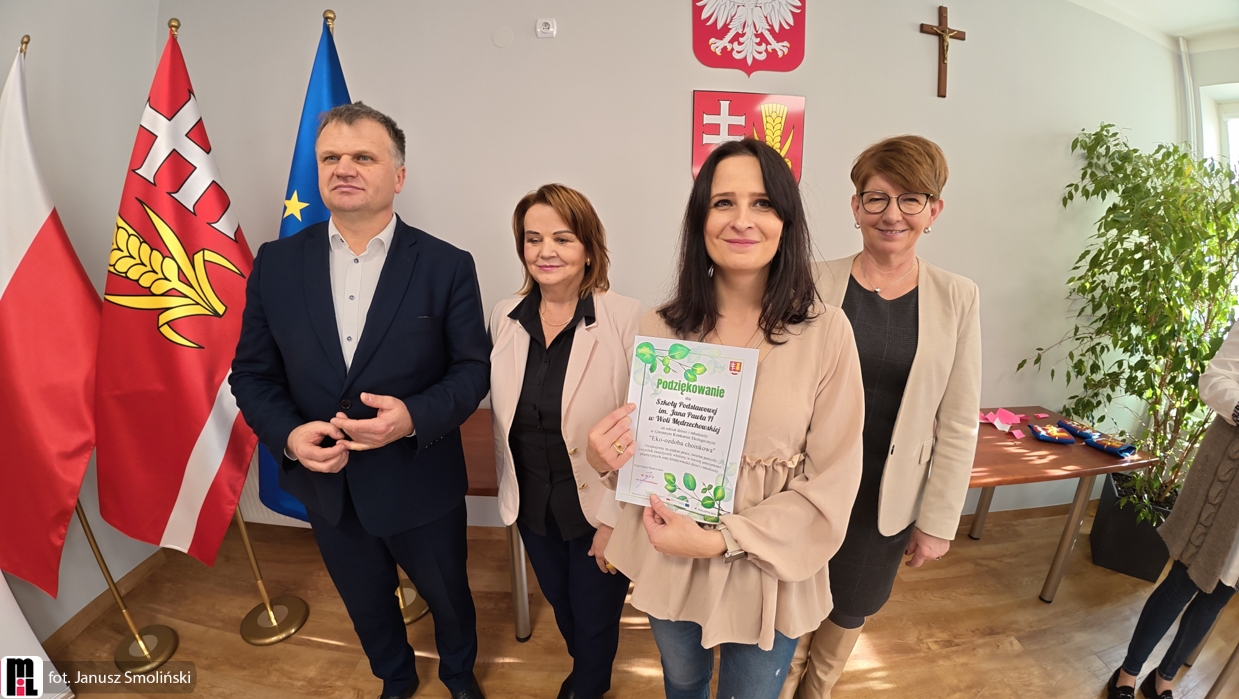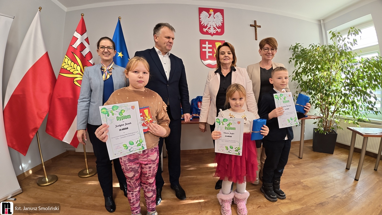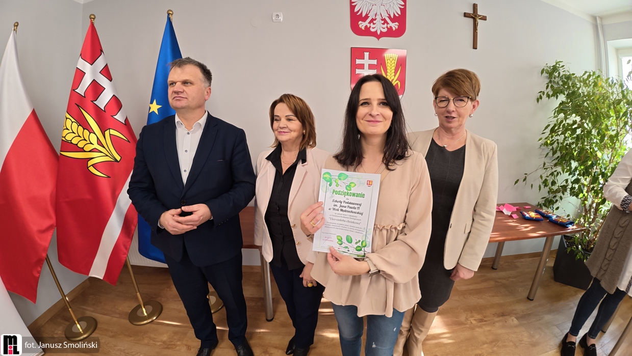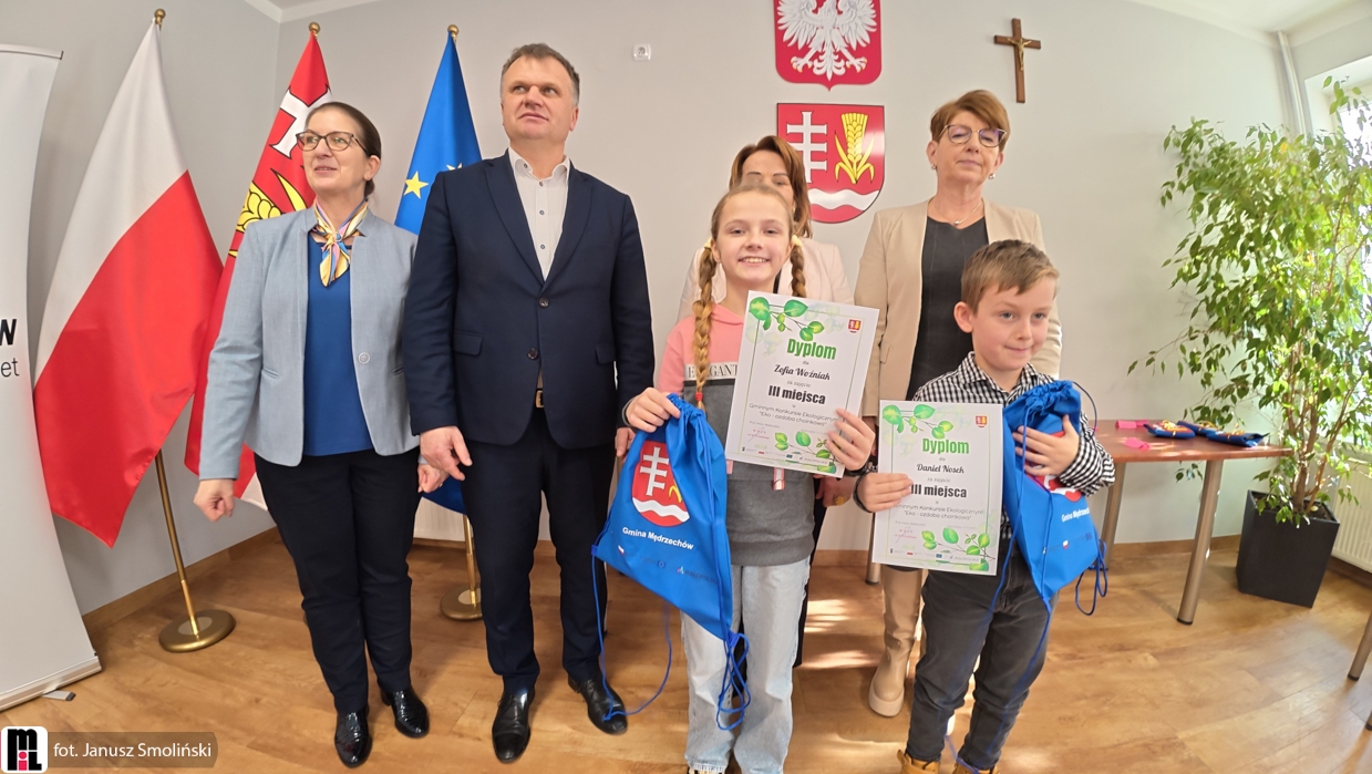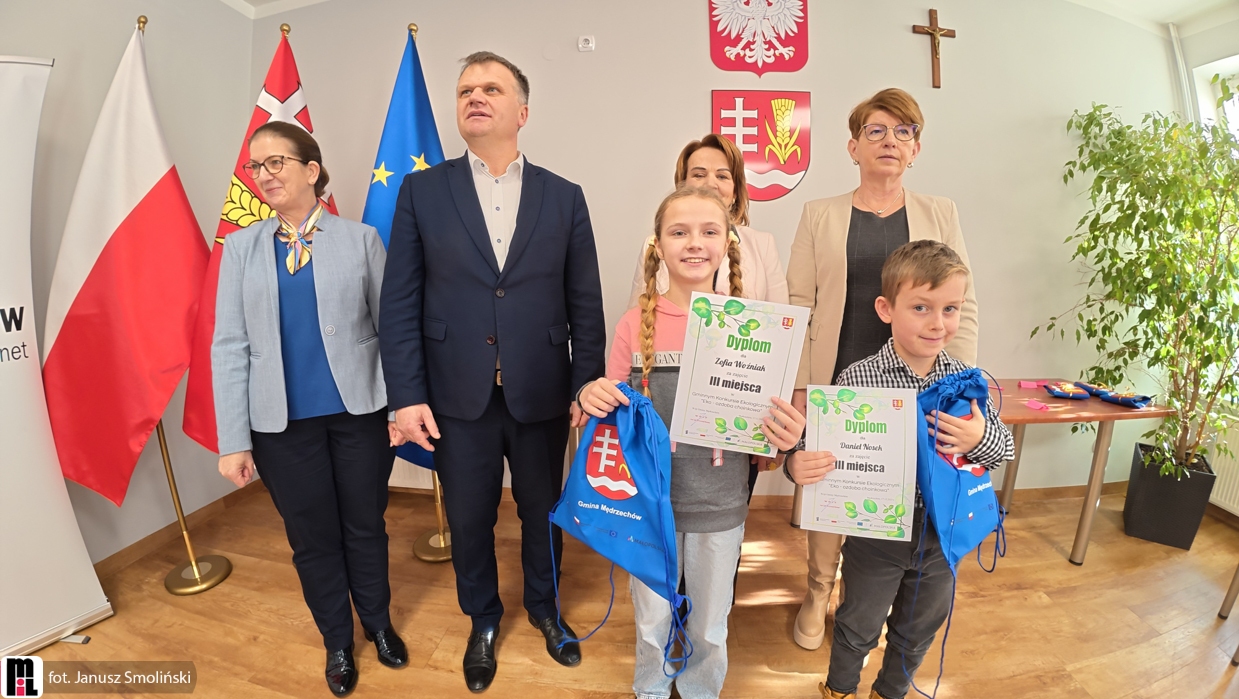 W uroczystym wręczeniu nagród uczestniczyli przedstawiciele samorządu: wójt gminy Mędrzechów Krzysztof Korzec, sekretarz gminy Barbara Pobiegło, przewodnicząca Rady Gminy Barbara Brożek oraz skarbnik Ewa Klimaj. Samorządowcy pogratulowali wszystkim uczestnikom konkursu, podkreślając znaczenie edukacji klimatycznej już od najmłodszych lat.
