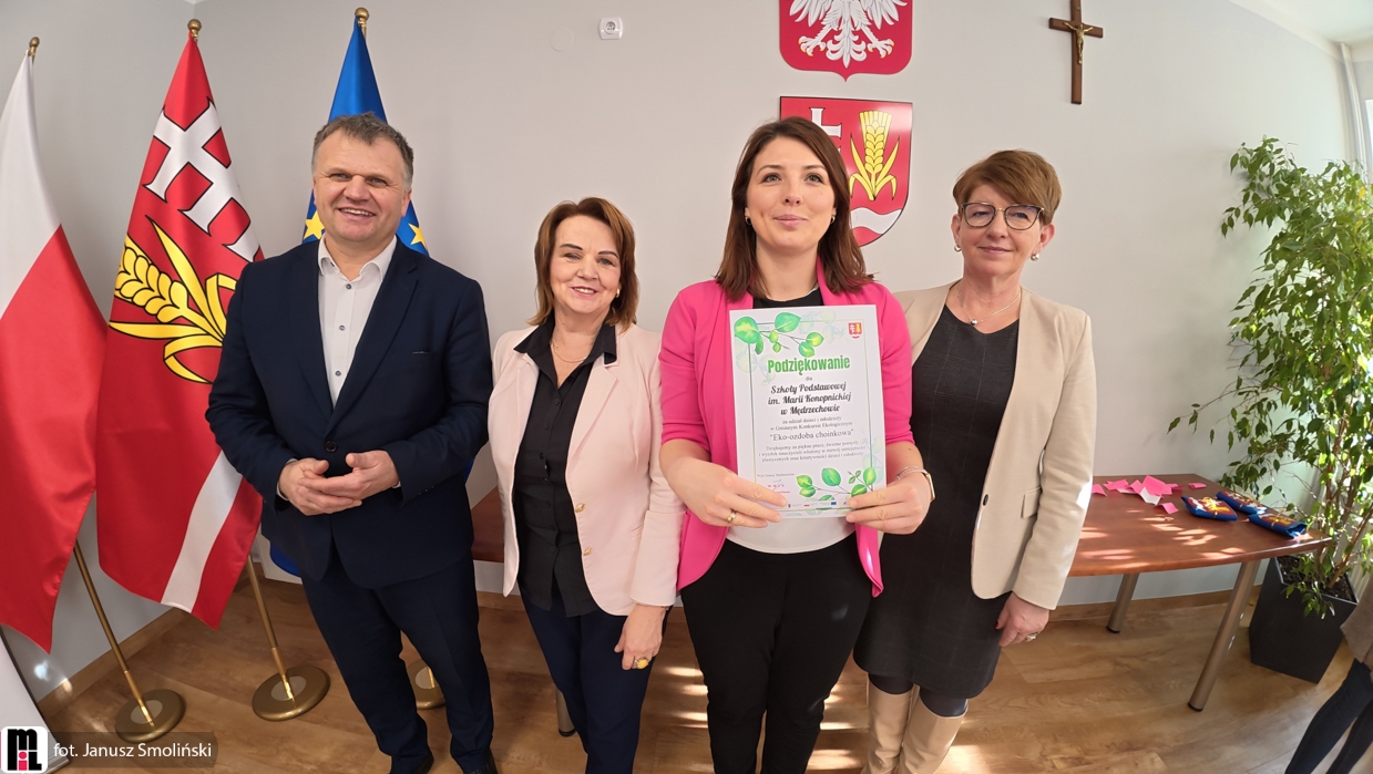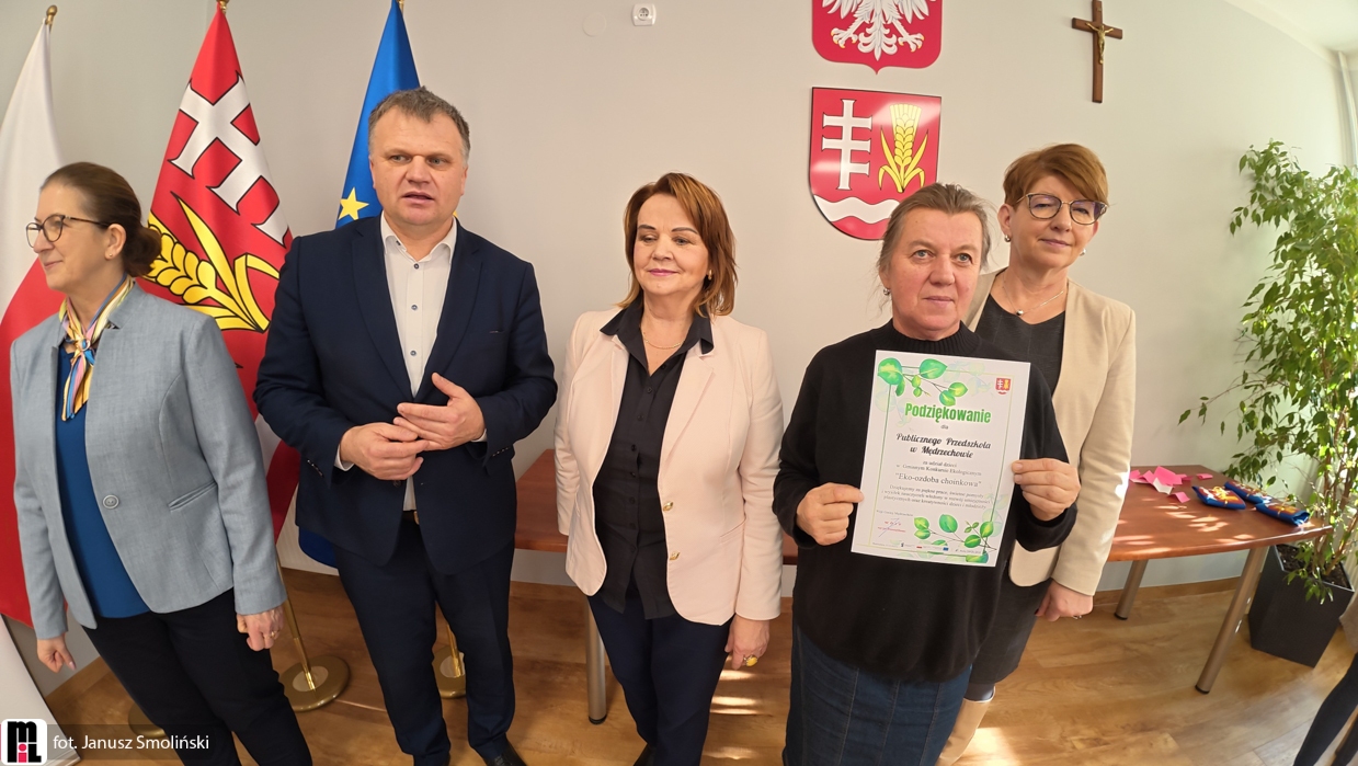 W uroczystym wręczeniu nagród uczestniczyli przedstawiciele samorządu: wójt gminy Mędrzechów Krzysztof Korzec, sekretarz gminy Barbara Pobiegło, przewodnicząca Rady Gminy Barbara Brożek oraz skarbnik Ewa Klimaj. Samorządowcy pogratulowali wszystkim uczestnikom konkursu, podkreślając znaczenie edukacji klimatycznej już od najmłodszych lat.