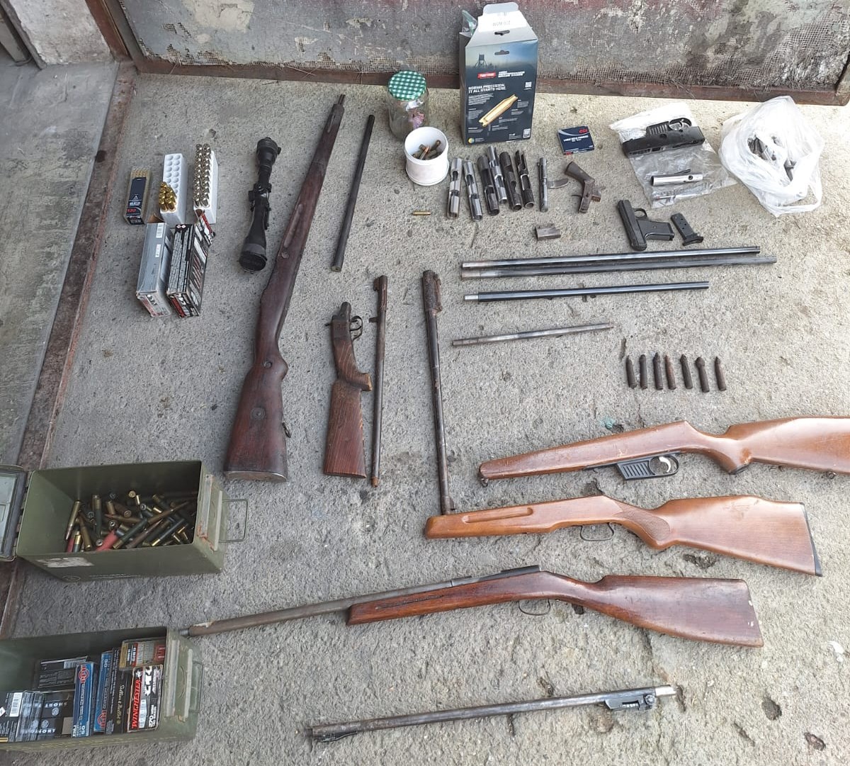 Podczas czynności policjanci ujawnili i zabezpieczyli broń palną krótką i długą – w tym karabinek KBKS, pistolet oraz rewolwer z magazynkiem. Oprócz tego znaleziono ponad 50 istotnych elementów broni, takich jak lufy z komorą nabojową, kolby z mechanizmami spustowymi czy zamki.