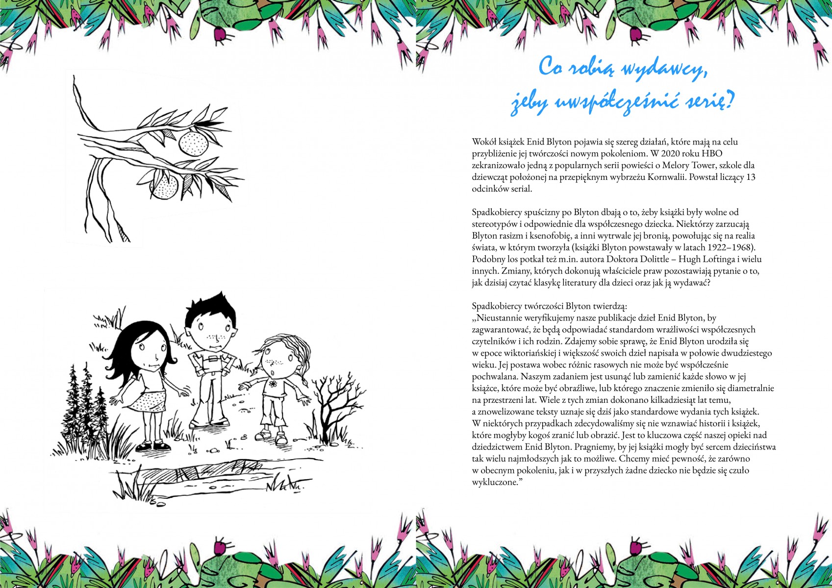 Enid Blyton jest jedną z najpopularniejszych pisarek dla dzieci na świecie. W Polsce mało kto o niej słyszał i prawie nikt nie czytał jej książek, choć Blyton napisała ich aż 700. Według UNESCO to najczęściej tłumaczona autorka literatury dziecięcej.
