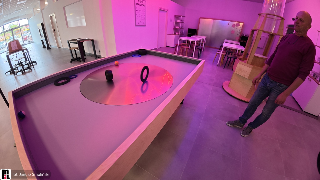 Drugą częścią jest Majsternia – przestrzeń twórczej aktywności, w której odwiedzający mogą indywidualnie lub zespołowo rozwiązywać zadania logiczne i konstrukcyjne. Liczy się tu proces, wspólne myślenie i próbowanie różnych rozwiązań, a nie szybki efekt końcowy.