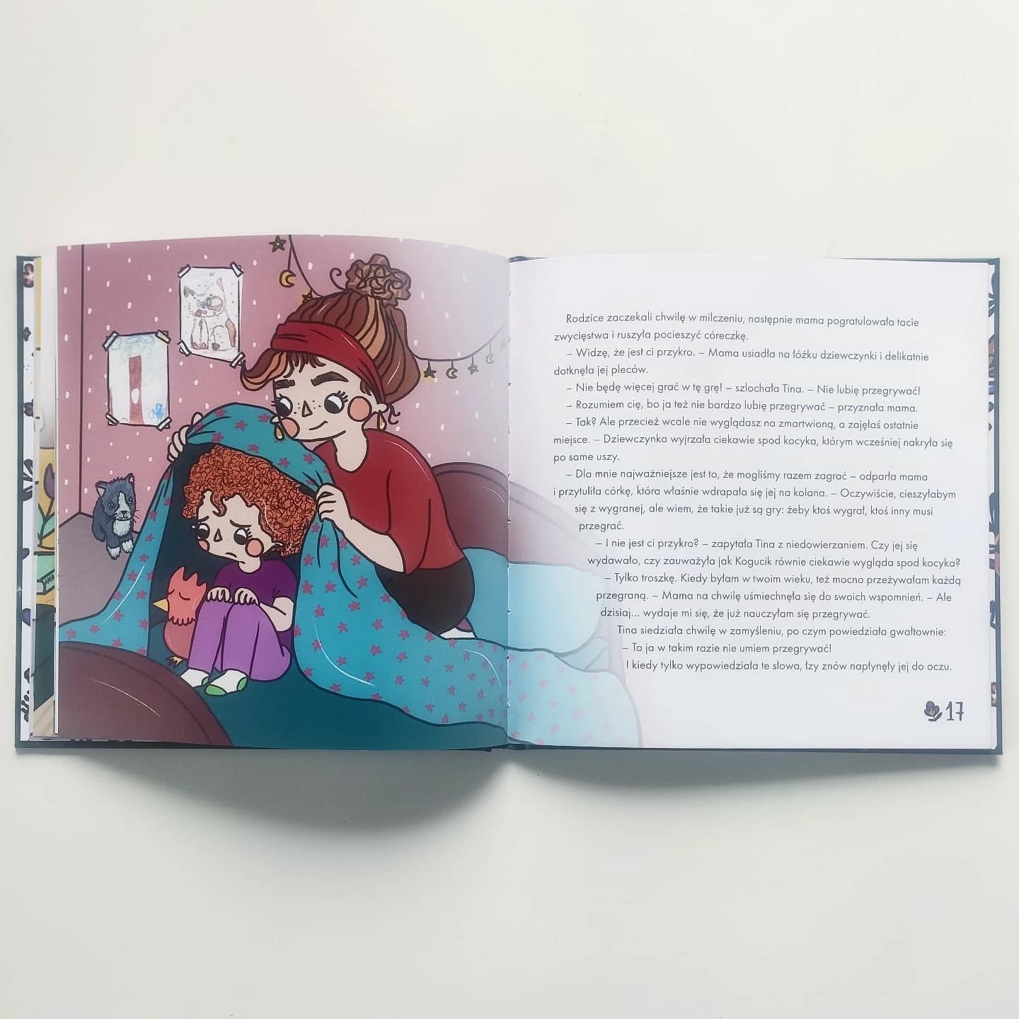 – Z kolei „Tina nie lubi przegrywać” porusza temat trudnych emocji, rywalizacji i uczy radzenia sobie z porażką. Gdy Tina dostaje od cioci grę planszową poznaje nieprzyjemne uczucia towarzyszące przegranej, a dla dzieci jest to niezwykle trudna rzecz. Ta mądra historia w prosty sposób wesprze dzieci w rozwoju emocjonalnym, a rodzicom da świetny punkt wyjścia do rozmowy.